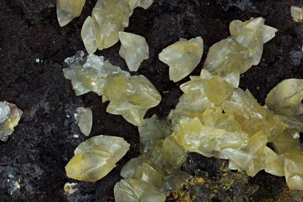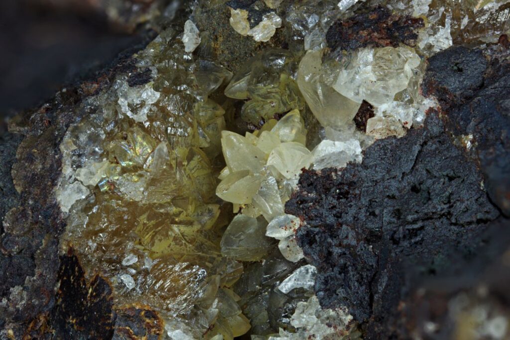 Below: Smithsonite, Teutonic Bore, Western Australia. Width of view 6mm.