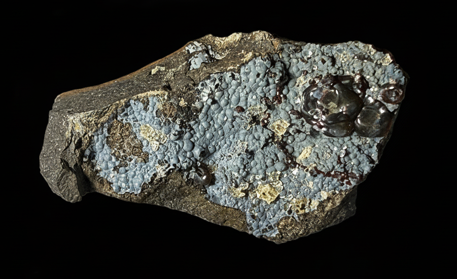 A very nice specimen from this extinct location of lustrous round balls of dark brown siderite with colourless phillipsite on blue-grey montmorillonite. Boxed Thumbnail. Ex Brian Davis Collection. Ex Frank Robinson (2007). Frank Robinson Cat No 1852.