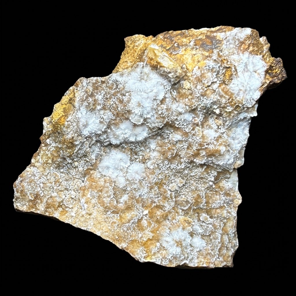 Comes in a 40x40x40mm thumbnail box.  White sprays that fluoresce weakly purple under MW and SW. Acquired by Brian at a Victorian Mineralogical Society sale day. Extinct site.