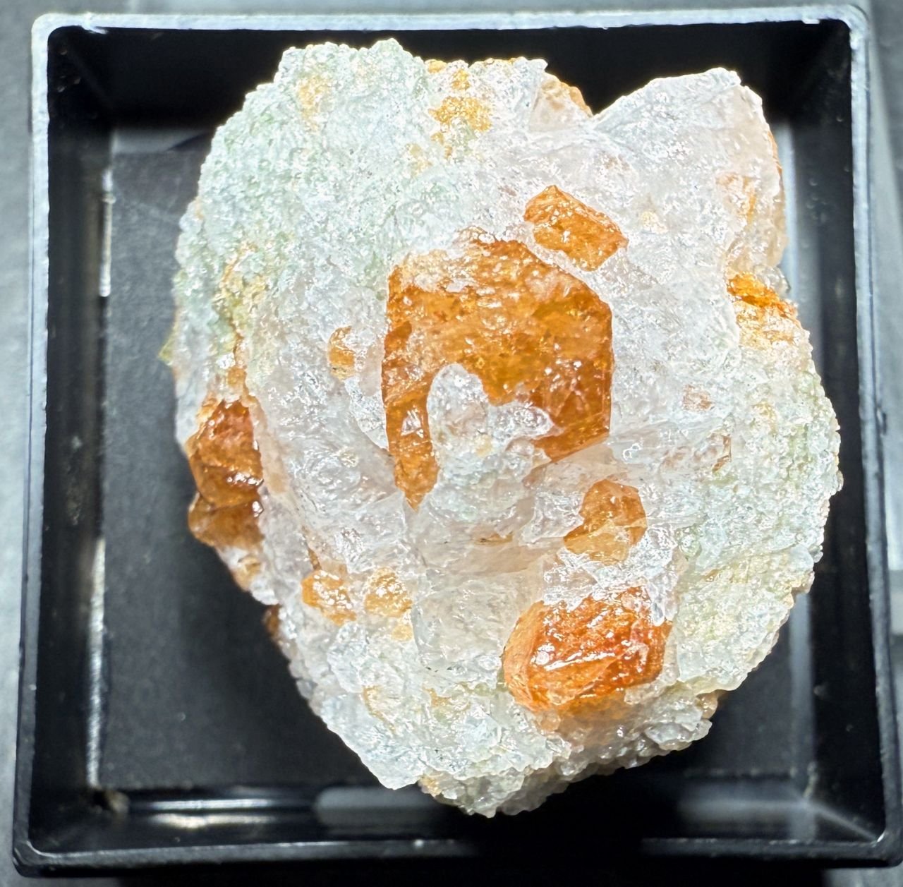 Price $2 Orange garnet crystals frozen in matrix. Boxed Thumbnail. Ex Brian Davis Collection. Ex Frank Robinson (2007). Frank Robinson Cat No 3225. I am not certain of…